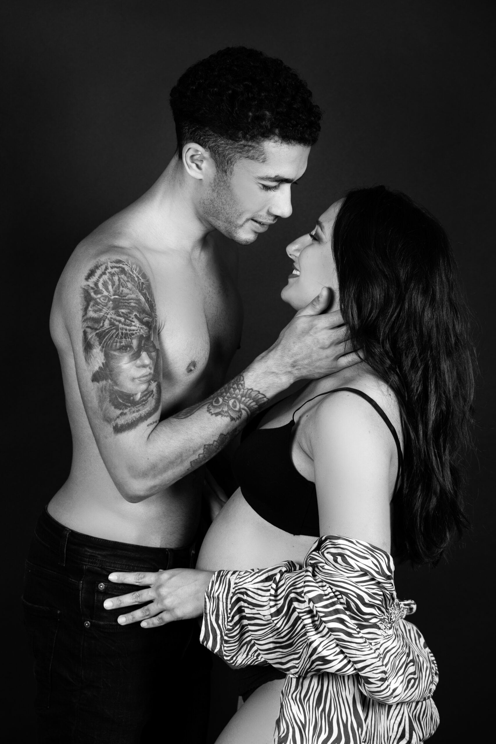 Vous pouvez choisir une séance photo en studio ou en extérieur (ou les deux !). Mon studio situé au Muy dans le Var est lumineux et cosy, avec un décor bohème qui vous fera vous sentir à l’aise et détendue et également des fonds studio de couleurs. En extérieur notre belle région de Provence offre de magnifiques paysages ! Je capturerai des photos à votre image, en racontant votre histoire d’amour pour immortaliser cette période unique où votre corps est en pleine transformation.